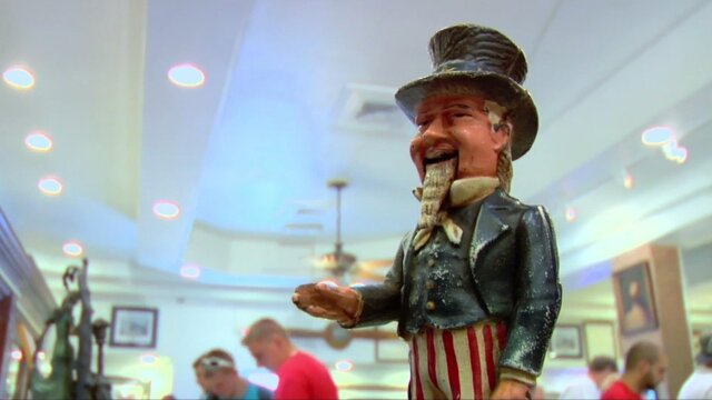 The team comes face-to-face with the fire-breathing, 31-ton mammoth Robosaurus; Rick and Chumlee are presented with a cast iron Uncle Sam coin bank from 1886; a computer meltdown threatens to bring the shop's business to a standstill.