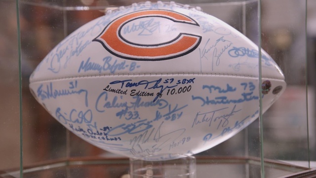 A seller Super Bowl shuffles into the shop with a helmet and football signed by Da Bears; Chum strikes a jumpman pose as he checks out a bronze Michael Jordan statue; Corey says hello to a replica 1963 Cadillac from the movie "Scarface."