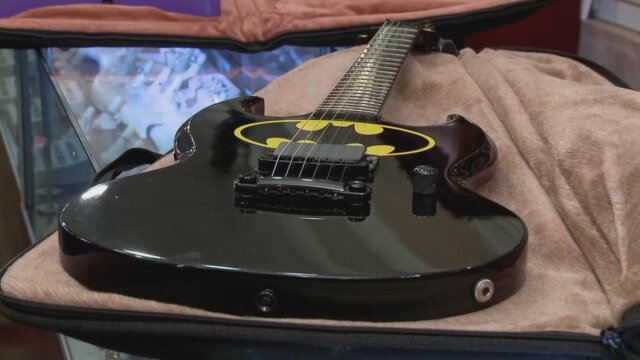 Limited-edition Batman and Joker Bolin guitars; a bronze sculpture by M.L. Snowden; a pair of signed Betty Crocker letters; a WWII-era Adolf Hitler pincushion.