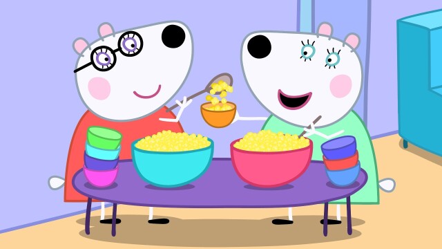 Peppa is at Penny Polar Bear's house for a movie night; Granny Sheep and Suzy take Granny Pig and Peppa around Art House Day; Madame Gazelle and Mr. Bull take the children to the woods to learn all about flowers; Peppa and George play in the garden.