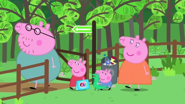 Peppa and family go on a trip to Paris to meet Delphine Donkey and her family; the Donkey family take Peppa and family to the top of the Eiffel Tower, forcing Daddy Pig to face his fear of heights.