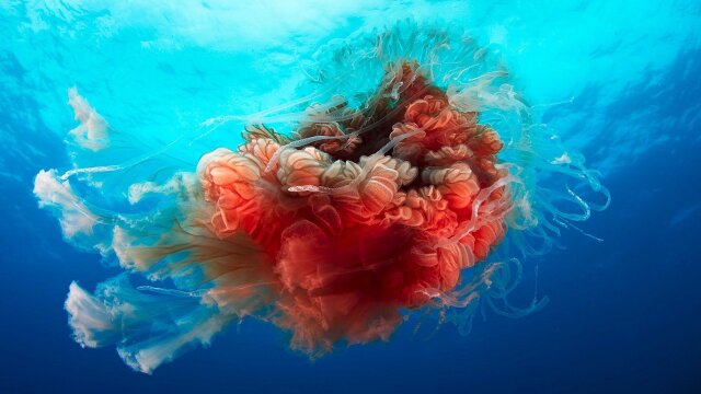 The Big Blue is a marine desert, far from shore, miles deep, with almost nothing to eat and home to some of the largest creatures on Earth; special pressure-proofed cameras capture Sperm whales on the hunt for squid 3,000 feet down.