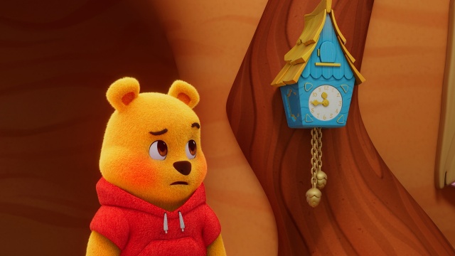 Pooh Bear realizes the chalk he brought has turned to dust so Rabbit hops home to get a spare box. Pooh Bear gets bored while waiting for her to return and makes up some games.