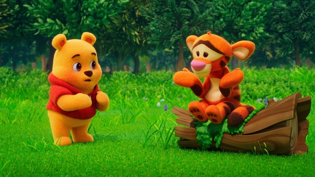 Winnie the Pooh brings a trampoline to his playdate with Tigger, so they can bounce around together.