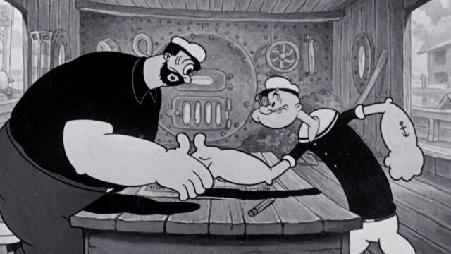 Popeye and Bluto are deep sea divers. Popeye has a treasure map and cuts Bluto in on the deal.