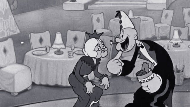 On New Year's Eve, Popeye and Bluto take Olive Oyl and her grandmother out dancing.