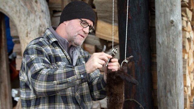 A 56-year resident, Sam, makes the most of what he has; in order to extend the wear of his boots using mink oil, he must first find and trap the minks.
