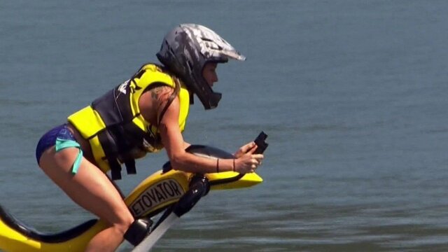 The world's first flying water motorcycle; England's Armourgeddon; a human egg beater ride.