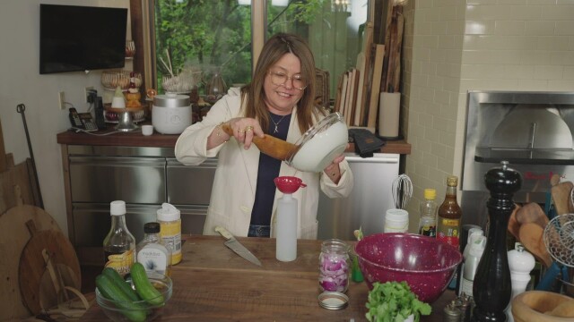 Rachael shows how fun and easy it can be to make a homemade poke bowl, a popular Hawaiian dish featuring diced raw fish tossed in sauce and served over rice, which happens to be a favorite of her sister Maria. To complement the meal, John mixes a Maria Tai, a white rum-based twist on the classic Mai Tai, served over ice.