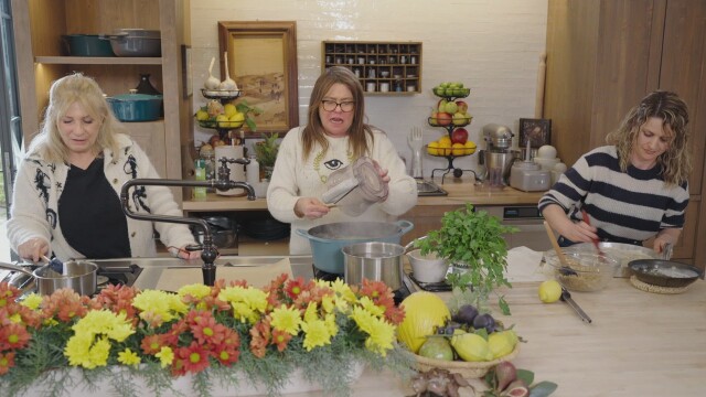 Rachael and her sister Maria, joined by friends Leida and Vina, cook up a feast in Rachael's Tuscan kitchen.