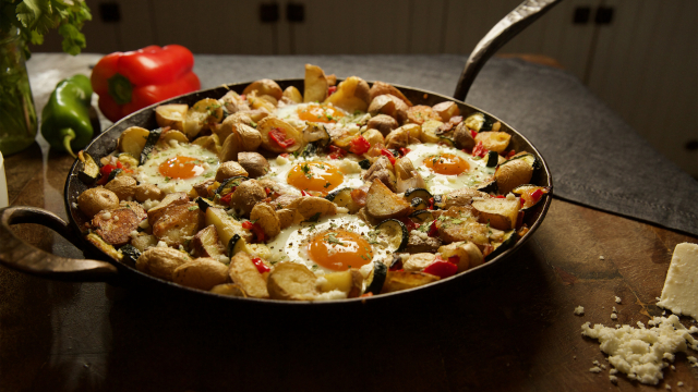 While Austin is away at a bull sale, Elizabeth and the boys enjoy a slow morning; on days like these, Elizabeth loves making a special breakfast for them; she's making some of their favorites: ableskivers and a rustic baked egg dish with salsa.