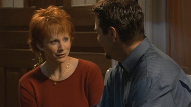 Reba's ex-husband becomes jealous when she calls a plumber to fix a faucet; Cheyenne "moons" Van's teammates.