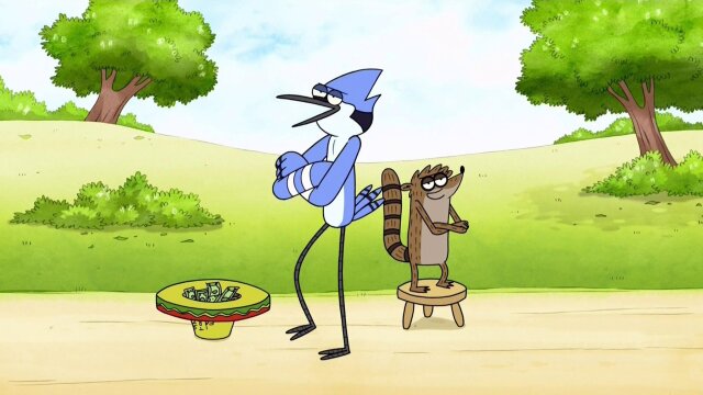 Mordecai and Rigby become street performers to earn money for a video game.