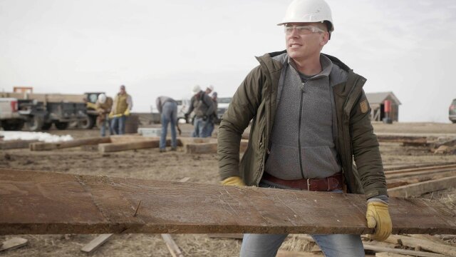 A one-hundred year old barn is moved to Greycliff, Mont.