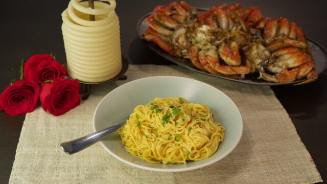 Rev Run and Justine make the most of the kids being out of the house on a Sunday to recreate a meal from their early years of dating; cracked crab; garlic noodles; banana ice cream.
