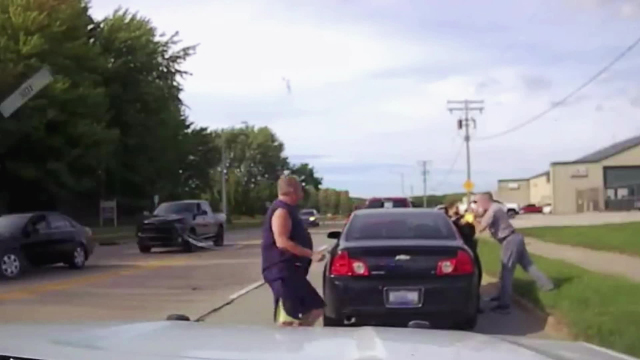 Good Samaritans assist a lone police officer after a traffic stop turns violent; a driver fires his gun through his own windshield after an aggressive driver allegedly flashes a firearm; two drivers come to blows at a red light.
