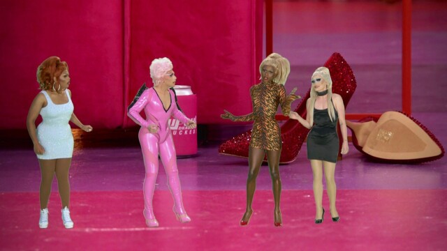The queens flex their acting skills in a new sci-fi adventure, playing tiny shrunken drag queens; Cynthia Erivo ("Genius: Aretha"); Scarlett Johansson ("Black Widow") makes a virtual appearance in the workroom.