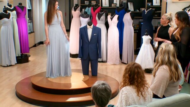 Bride Toya is upstaged by her opinionated bridesmaids who head downstairs to shop for themselves instead of helping her; Bride Kayla is also downstairs looking for the perfect shade of blue.