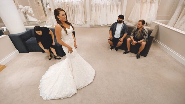 Bride Nina is pressed for time to find a reception dress she can bust a move in; couple Ashley and Amber need to find a jumpsuit for Amber and a gown for Ashley to use her legs comfortably since she was born without use of her arms.