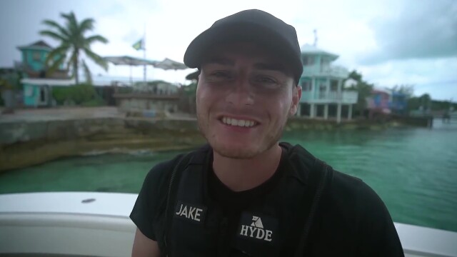 Jake spearfishes for his dinner on a remote island and explores a clear hot spring for lost treasure.