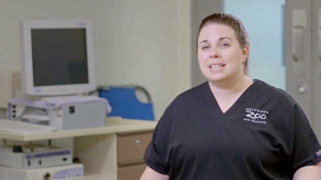 A monkey shows its true colors; a gigantic female bison gets a checkup.