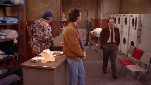 George plots revenge on his former boss (Fred Applegate); Jerry seeks to get even with a laundromat owner (John Capodice).
