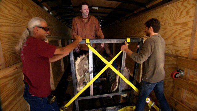 Roy transports giant animatronic hillbillies and a side load of cat caskets; Jennifer moves an antique Honda.