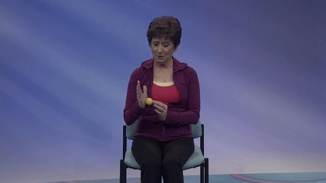 Warmup exercises using a large ball; using a small ball for finger flexibility.