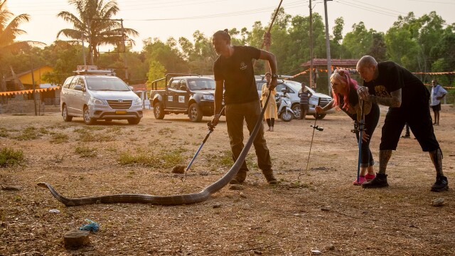 Si and Sioux help Shyam rescue a very elusive 'Houdini-snake'; Mbali goes solo with a black mamba in a courthouse, while Si and Sioux tackle a grumpy krait on the night-shift; Simon tails his first wild king cobra.
