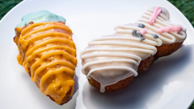 Host Sunny Anderson asks the six remaining bakers to wake him up with delicious Easter doughnuts infused with a shot of caffeine and piñata cakes filled with homemade treats.