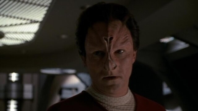 An identity-stealing alien switches places with Paris, then takes command of Voyager after assuming Janeway's identity.