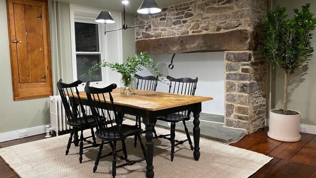 Jeff and his team return to an 18th-century farmhouse where they had previously remodeled the kitchen; this time around, the team transforms a barely-used pass-through room into a functional and historically-correct dining room.