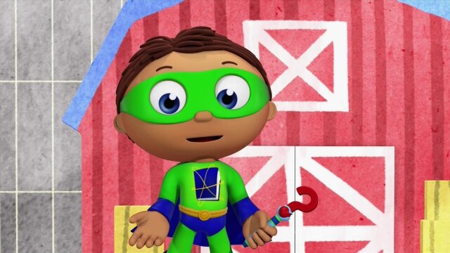 When Baby Joy shakes her book, "A Day With Farmer Fred," words fall out and get mixed up, so the Super Readers go into the storybook to put the words back in the right order.