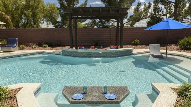 U.S. Air Force veterans live in their dream home in Las Vegas, but their home's pool is a nightmare; Mario comes to the rescue building a kid-friendly pool and a backyard kid zone complete with a Baja shelf, outdoor barbecue and play structure.