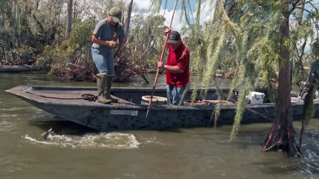 Swampers race to cash in on a post-hurricane feeding frenzy; Troy and Pickle take on a hunt using spears to fill their tags in a no-firearms zone; Joey and Kallie venture deep into the remote blackwater swamp.