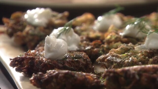 Michael sources fresh ingredients from a garden in the sky for Mezze. On the roof of a New York restaurant, this is farm-to-table in the extreme. Featuring Greek almond dip (Skordalia) and golden Zucchini Fritters (Keftedes).