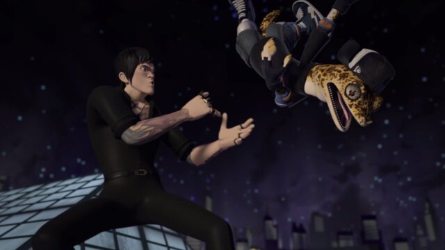 Michelangelo and Casey become friends with Mondo Gecko, a radical, skateboarding, reptilian teenager.