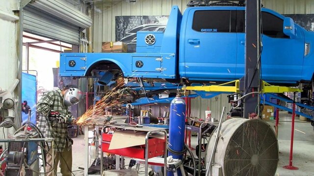 Bill and the team fix another shop's mistakes when a 2017 F-350 is hauled into the shop broken due to a botched lift; a client insists on the ultimate tailgating BBQ trailer with custom everything.
