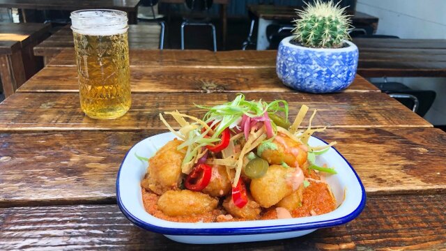 Alex Guarnaschelli guzzles down beer-battered cheese curds in Chicago while Jason Smith devours boozy bourbon balls in Kentucky; in Wisconsin, Elena Besser proclaims her love for chicken Parmesan with vodka sauce.
