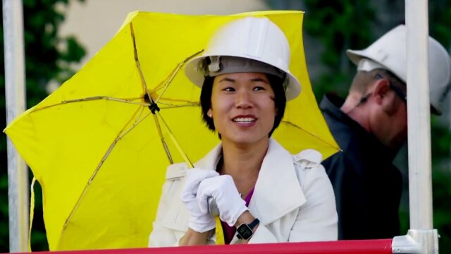 The competitors build an elevator using the power from a waterfall.