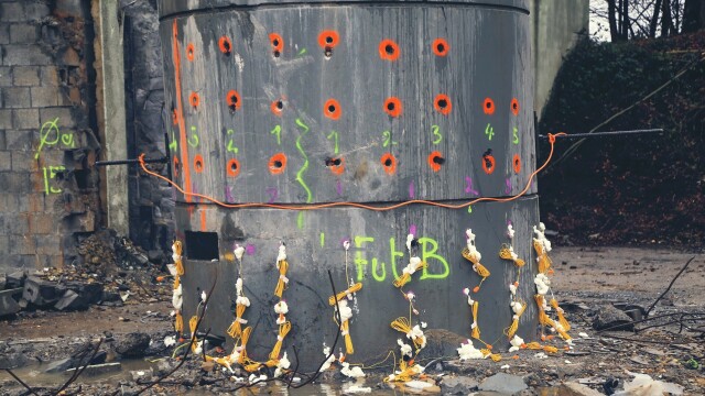 A 170-meter tower close to a public highway is imploded.
