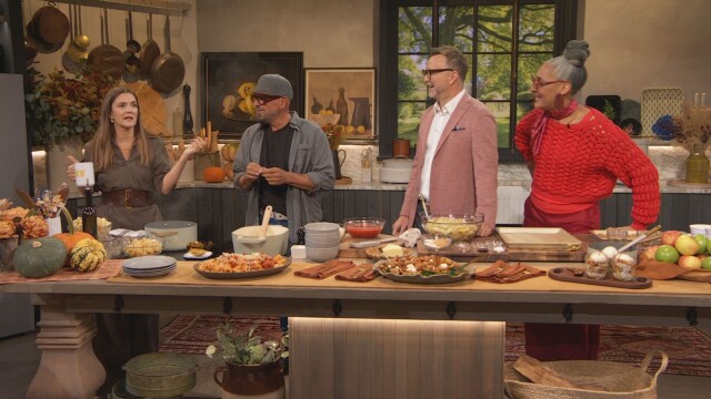 The hosts of "The Chew" reunite - Michael Symon, Carla Hall, Clinton Kelly and Sunny Anderson; Drew's guests take the pumpkin spice challenge.