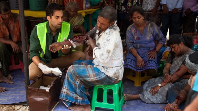 The team is on high alert after a building collapses in Barco; Ram looks after a patient whose husband is missing.