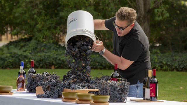 In Napa Valley, Calif., the six remaining food truck teams go head-to-head in a grape-stomping competition with a unique prize; host Tyler Florence challenges them to incorporate red wine in a dish; he forces the teams to get back to their roots.