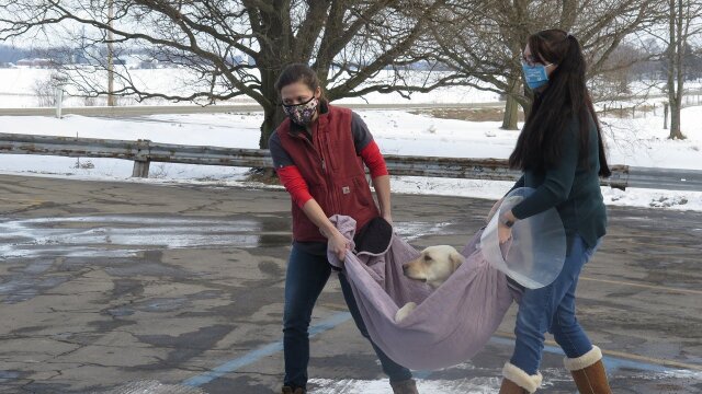 The vets treat back-to-back canine emergencies and aid a farrowing pig.