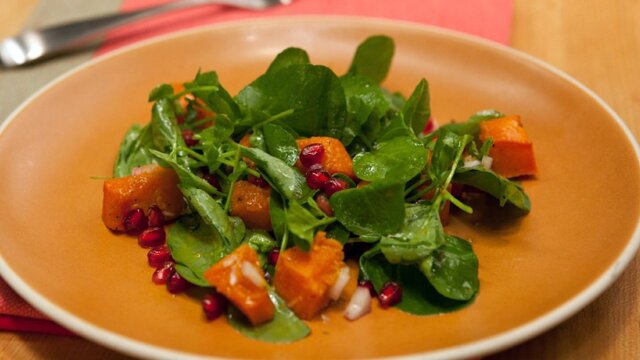Creamy chicken succotash with frozen lima beans; the chefs tackle foods most people avoid, like pomegranates, ginger and butternut squash; cow pile cookies; banana pudding pie.