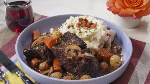 The crew celebrates French bistro classics: Jeff Mauro serves up Classic French Onion Soup; Geoffrey Zakarian and Sunny Anderson team up for Beef Bourguignon and Creamy Mashed Potatoes; Alex Guarnaschelli bakes a signature Pear Tarte Tatin.