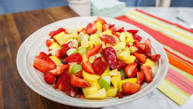 The Kitchen hosts share recipes for a spring soirée; Alex Guarnaschelli makes asparagus and prosciutto in phyllo; Katie Lee Biegel prepares a main course of spring chicken paillard; Sunny Anderson brings her easy rainbow fruit salad.
