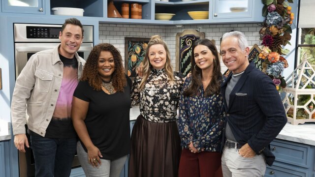 Geoffrey Zakarian makes his Thanksgiving turkey two ways; Sunny Anderson puts her spin on a canned classic with her homemade apple and ginger cranberry jelly; Jeff Mauro bakes a brownie pecan pie.