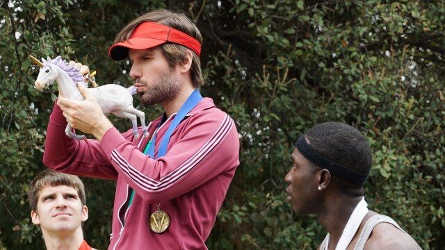 Pete wants to run the Beer Mile and Taco coaches him; Jenny plays Andrew and Meegan to secure victory in her match up against Andre; Kevin obsesses over where the gardener drops trough.